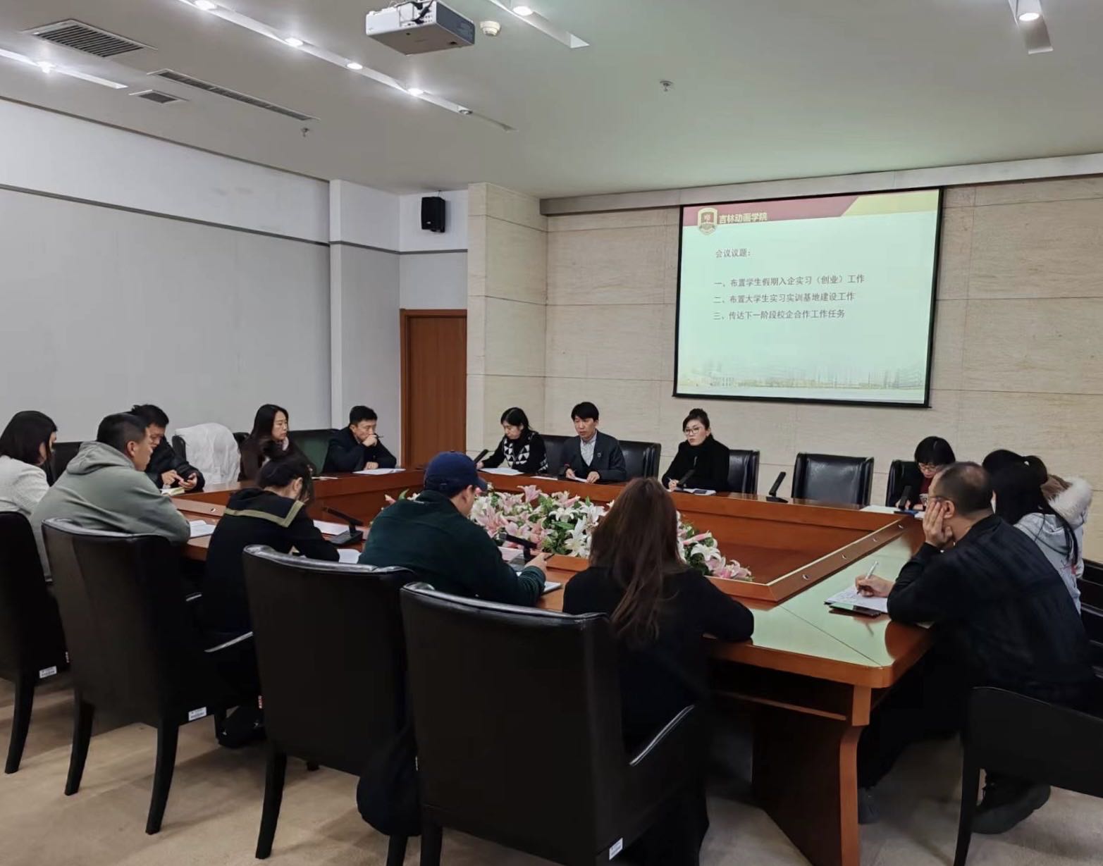 2023年12月8日,由教务部、集团经营管理中心、创新创业学院共同组织召开阶段性校企工作部署会。会议由教务部部长闫欣主持,9001cc金沙以诚为本校长助理、吉动文化艺术集团高级副总裁彭巍、创新创业学院副院长许小多、教务部实践办副主任黄春参加会议。