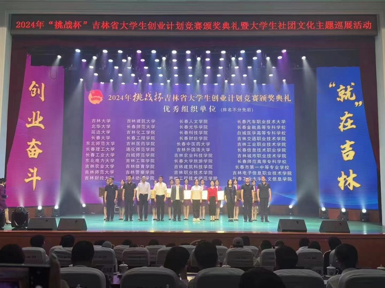 相关奖项在吉林省委宣传部、共青团吉林省委、吉林省社会科学院、吉林省科学技术协会、吉林省教育厅、吉林省人力资源和社会保障厅、吉林省学生联合会主办的“创业奋斗 ‘就’在吉林”2024年“挑战杯”吉林省大学生创业计划竞赛颁奖典礼暨大学生社团文化主题巡展活动上给予颁发。同日,学校获评“优秀组织单位奖”,4位教师荣获“优秀指导教师”称号。