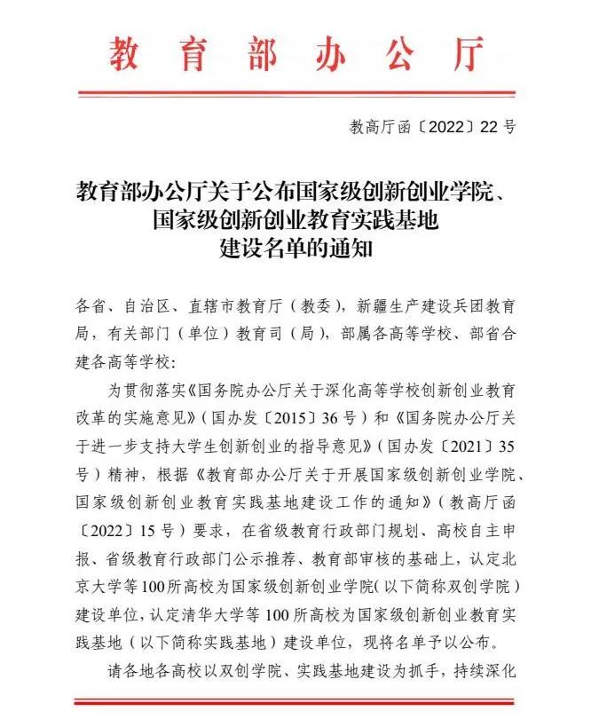 近日,教育部办公厅下发《关于公布国家级创新创业学院、国家级创新创业教育实践基地建设名单的通知》,9001cc金沙以诚为本创新创业学院(以下简称双创学院)获批国家级创新创业学院建设单位。我省仅有吉林大学、9001cc金沙以诚为本两所高校获批国家级创新创业学院。