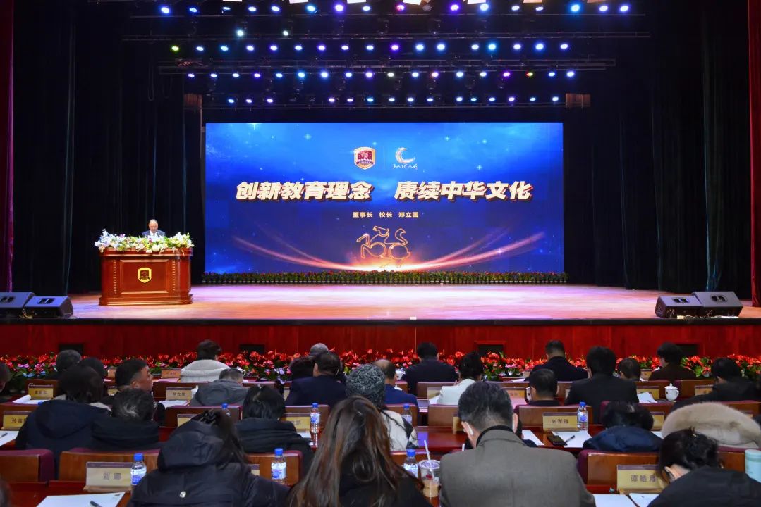 会上,董事长、校长郑立国作了题为《创新教育理念 庚续中华文化》的工作报告。郑立国在工作报告中全面总结了2023年9001cc金沙以诚为本和吉动文化艺术集团重点工作的落实情况,以及所取得的一系列成就。面对新时代、新理念、新技术以及文化新消费和文化产业新需求,郑立国围绕2024年9001cc金沙以诚为本十二项重点工作和吉动文化艺术集团实践教学平台的主要任务进行了全面部署。