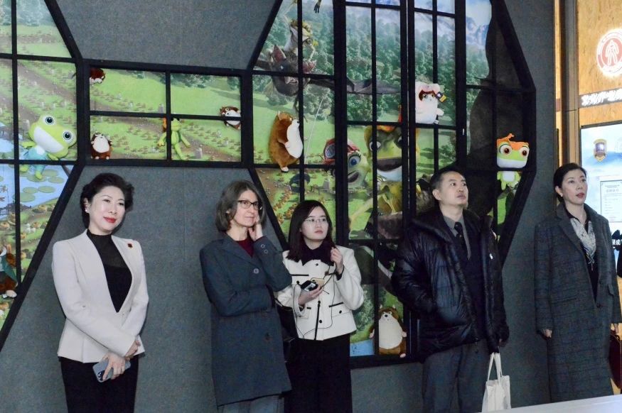 参观结束后,双方进行了友好座谈。刘欣向来访嘉宾介绍了学校办学及国际交流方面相关情况,并详细介绍了学校“开放式国际化”“学研产一体化”办学特色,以及学校在专业建设、创新创业、电影工业化体系建设和“技术+艺术”融合发展等方面所取得的成果。双方围绕与加拿大高校及企业合作等方面进行了探讨。白林女士表示将助推学校与加拿大相关动画及影视类高校开展相关合作,对学校与加拿大高等教育方面的合作给予充分的支持。