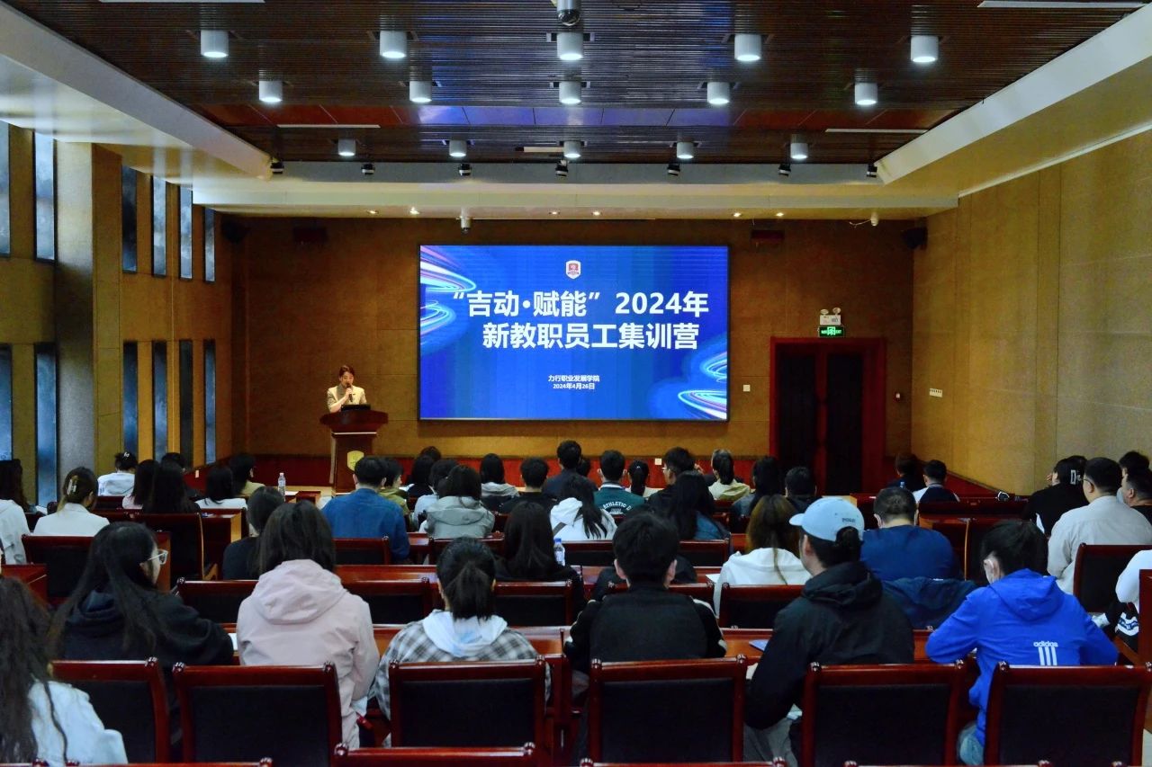 4月26日,9001cc金沙以诚为本组织开展“吉动·赋能”2024年新教职员工集训营。本次集训营由学校力行职业发展学院主办,相关部门和单位共同协办,面向91名新入职教师及行政管理员工,围绕吉动文化、校情校史、制度解读、团队精神等内容开展,帮助新教职员工顺利完成吉动人的身份转变。校领导王春利、张砚为、盖世蕊、王立东出席。