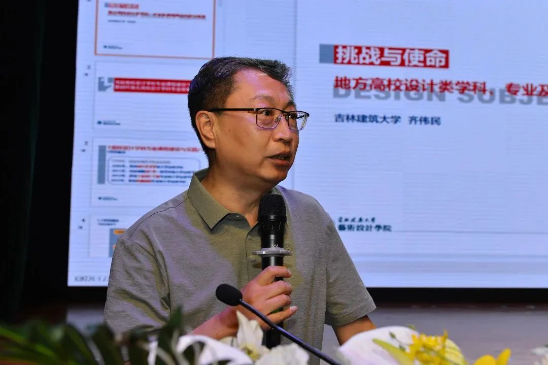齐伟民教授做题为《挑战与使命--地方高校设计类学科、专业及课程建设实践与思考》的报告。报告围绕“吉林建筑大学学科专业课程建设与实践”介绍了吉林建筑大学设计学科“五位一体格局”的构建过程及建设成就。基于“新时代地方高校设计学科专业发展思考”提出了“重塑”——适应外部条件变化,重新定义学科专业、教育功能、设计结构。“深耕”——内在发展与外部要求相互激化,学术研究趋于深化、细化、在地化“融合”——设计创新与人工智能领域之间深度融合、积极互动与同步响应的设计学学科发展思路。