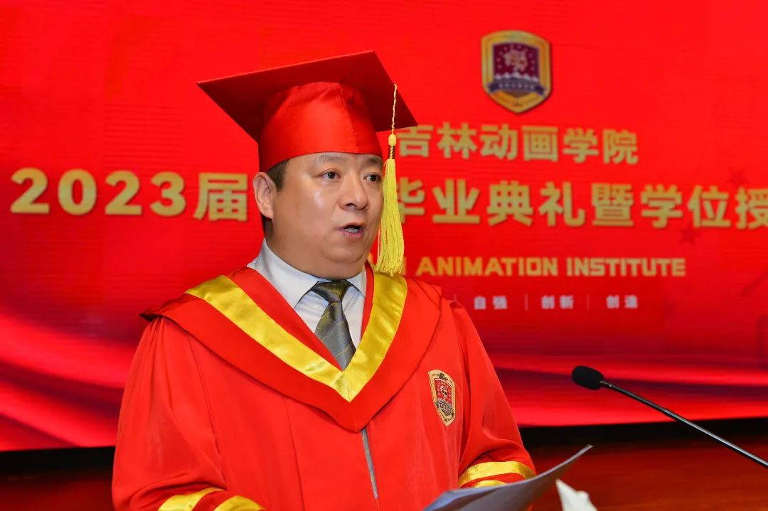 学校一直关注着大家的成长。我们一起与新时代同向同行,见证中国式现代化全面推进,中华民族伟大复兴的宏伟蓝图,见证中国力量,见证吉动风采。当然,我们也风雨同舟、超越自我,一起经受住了新冠疫情的严峻考验。今天,在这里,我们也将依依不舍地见证大家即将告别母校,创造新的未来。每每想起大家在校的点点滴滴,看着大家取得了优异的成绩,母校真心地感到骄傲和自豪。你们有的是在国内外各项大赛中取得卓越成绩的优胜者;有的是远赴边远地区、助力国家“西部计划”的奉献者;有的是努力钻研专业知识、不断提高自身艺术素养的奋进者。每个人都是那么的独一无二,无可替代,都各自拥有属于自己的精彩。我相信,未来的你们一定会秉持吉动“自尊、自强、创新、创造”的校训,求真进取,敬业奉献,带着吉动人的那份自信与豪迈,扎根中国大地,踔厉奋发、砥砺前行,服务国家、服务人民,愿你们“心中有宇宙,脚下有乾坤,胸怀全世界,驰骋天地间”!
