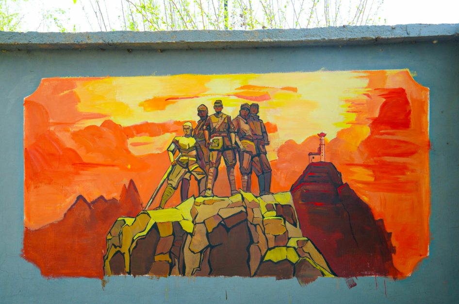 李心茹:4月29日我们一行人来到睿鹏博物馆,下午便开始画稿,经历过一夜风雨后有些墙的稿被冲掉,第二天我们抓紧抢修。让我印象深刻的是大家都努力地去完成这份志愿服务活动,认真地完成绘画、拍摄。