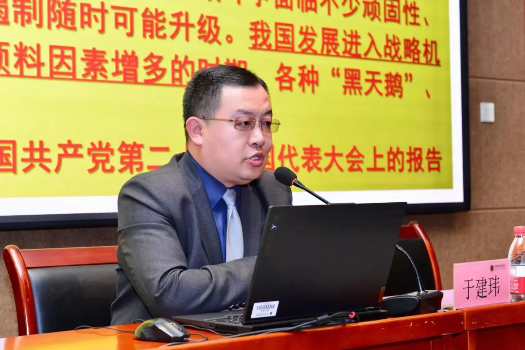 于建玮副教授讲座的题目为《新时代高等学校意识形态工作能力提升》。他从意识形态工作的基本概念、新时代高校意识形态工作的重要性和紧迫性及如何提升我们的意识形态工作能力三个方面进行了讲解。其中“意识形态问题本质上是政治问题,意识形态工作本质上是政治工作”重要观点获得参会者一致认可。