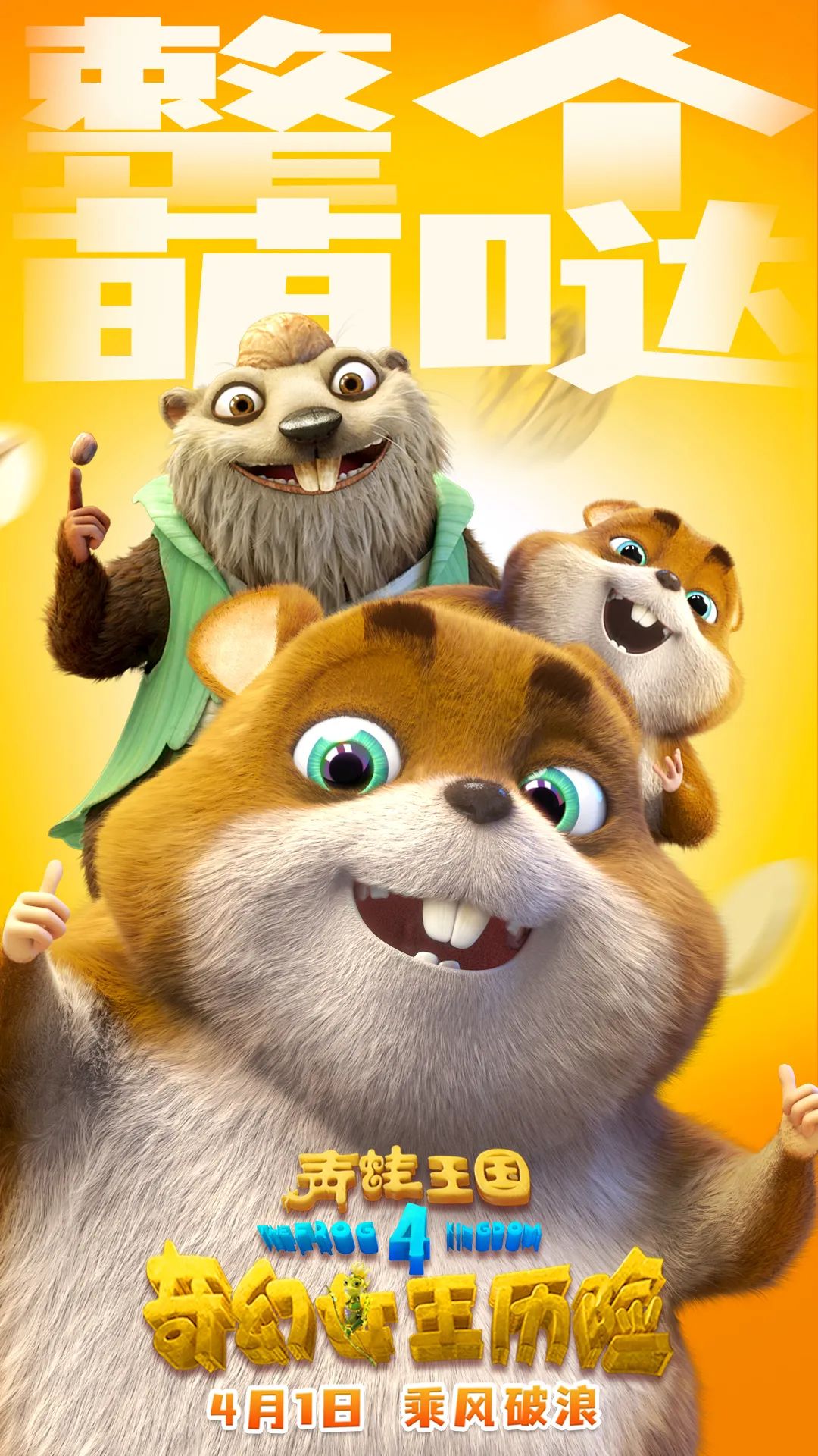可爱的表情,毛茸茸的外表,《奇幻女王历险》的萌面担当非小鼠莫属!海报中土拨鼠父子们欢笑着注视前方,被各种干果围绕,吃货的形象跃然在海报上。叽叽咕咕的鼠语是鼠鼠父子的加密通话,充满魔性,引人发笑,父子之间的互动爱意满满其乐融融。鼠大师热爱和平,为了避免战争维护两国和平一直做着努力,他不仅是联结蛙鼠两国的和平使者,还是吉克的人生导师,充满智慧的言语启发了吉克,助力她找到了污染源头,在蛙鼠大战关键点上扭转逆势!
