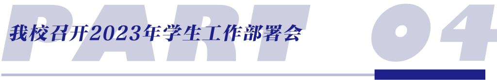 3月14日,金沙官网召开2023年学生工作部署会议。学校党委副书记、副校长张砚为讲话,校长助理、学工部部长张春雨部署全年学工工作。▶▶▶▶新闻详情