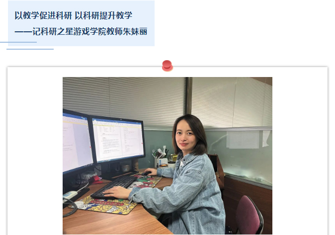 朱妹丽是动画艺术学院教师,主要从事数字媒体技术方面的教学工作与计算机视觉领域的研究工作。在教学科研工作中,她充分发挥共产党员的先锋模范作用,勤奋刻苦、认真负责,兢兢业业,在教书育人的平凡岗位上发光发热,贡献自己的青春和力量。