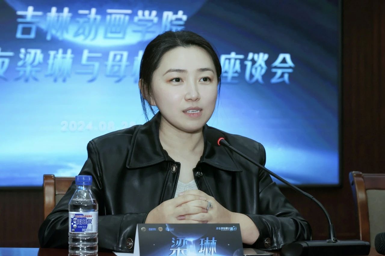 座谈会上,梁琳首先分享了自己的学习经历,回忆了在母校的生活点滴。她为学校的发展与取得的成就表示骄傲和自豪,对在校的学弟、学妹们拥有现阶段优质的学习环境及氛围表示羡慕。她结合亲自担任制片人的代表作电影《悬崖之上》,解析了影视创作、拍摄、制作全过程。她说,剧本创作不能盲目追风,好的切入点是剧本创作成败关键;拍摄中困难种种,但搭景是一大难题。重点提到影片中的“哈尔滨大街”影造其实是在山西大同的一片荒地上重新搭建的。作为制片人要全面统筹影片商业运营的成本控制,她亲力亲为,带领团队以片场为家“一点点去学、一点点去抠”,和工人一起铸就了美轮美奂的影视场景,为影片最后精彩呈现夯实了基础。梁琳表示,勤学与务实是影视工作最需具备的品质,未来也将是成就你影视职业生涯路上的一种难得的、宝贵的品质。