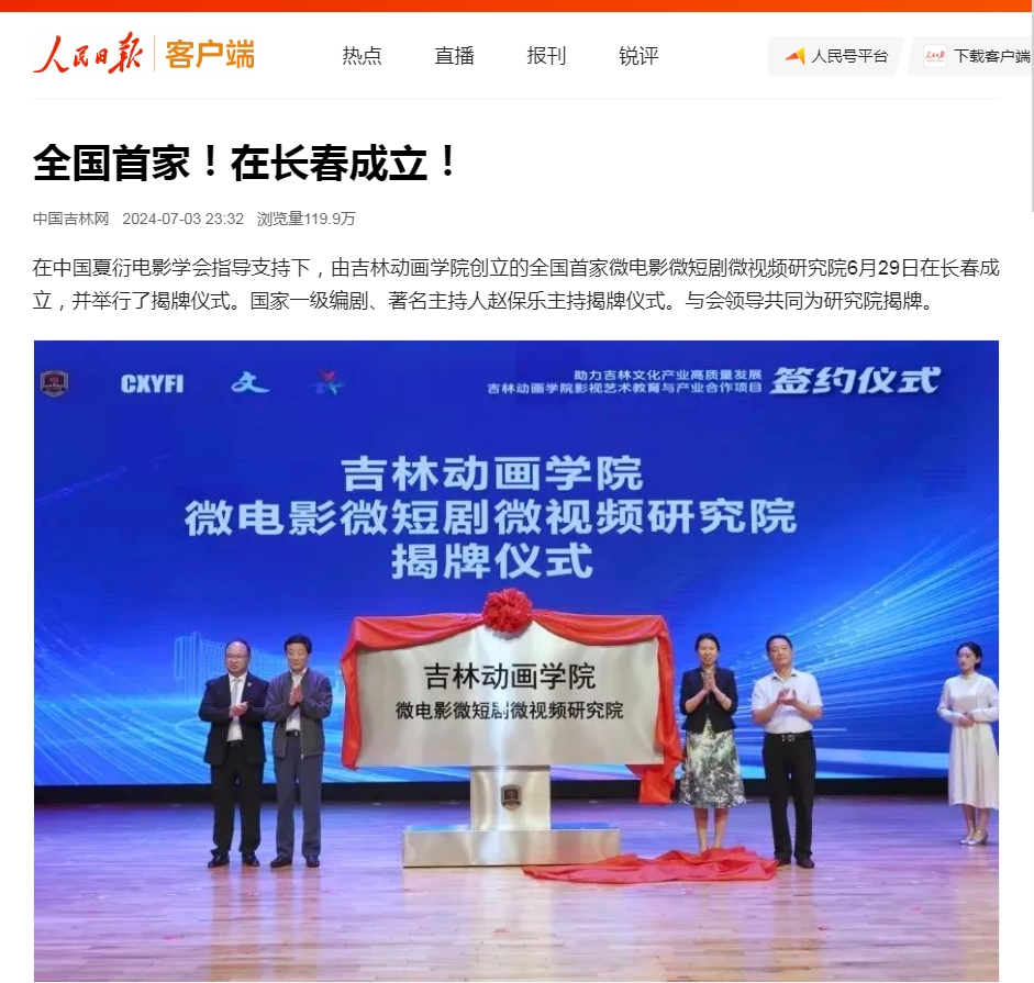 研究院是中国首家针对微电影、微短剧、微视频等作品,在创作规律、美学特征、文化内涵、产业发展以及人才培养等诸多方面开展深入研究的机构。研究院将汇聚国内影视艺术界高端资源,挖掘9001cc金沙以诚为本影视艺术教育特色与学科专业优势,搭建一个集研究、创作、交流于一体的综合性平台,通过有组织地开展系统性研究和实践,构建涵盖微电影、微短剧、微视频的内容创作、理论研究、技术创新、平台运营于一体的科研体系,促进9001cc金沙以诚为本在微电影、微短剧、微视频领域的高质量成果产出和人才培养质量的显著提升,助力吉林文化产业高质量发展。(责任编辑 / 门杰伟)
