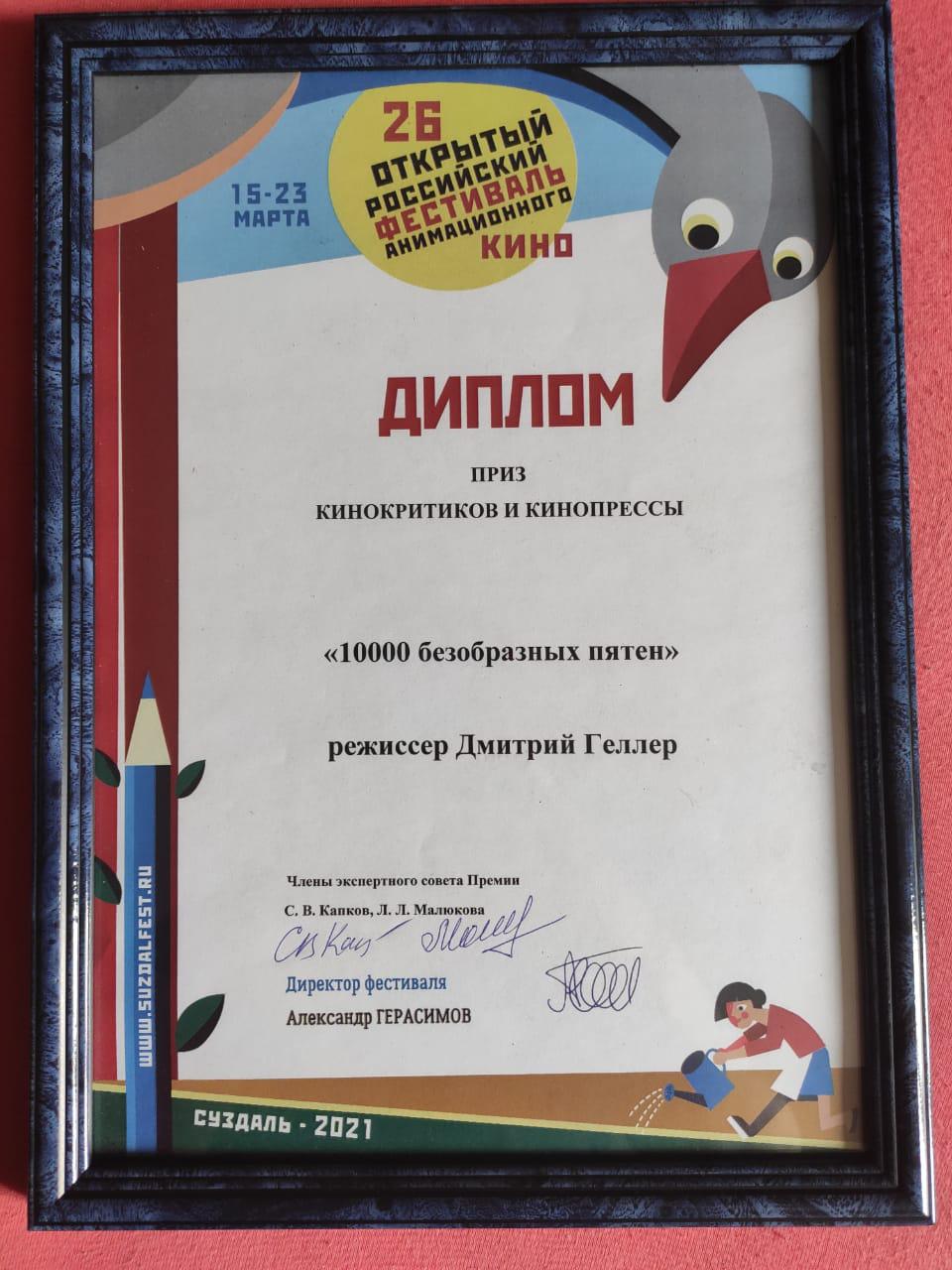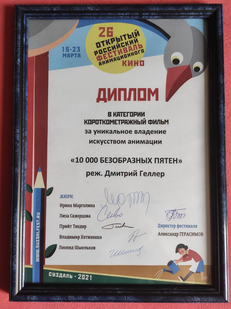 2021年3月23日,在俄罗斯苏兹达尔举办的第26届俄罗斯苏兹达尔动画电影节正式落下帷幕,金沙官网动画短片作品《万点恶墨》喜获第26届俄罗斯苏兹达尔动画电影节评论家选择-最佳作品奖(白象奖),评审组投票第一名,独特艺术魅力等三项大奖。