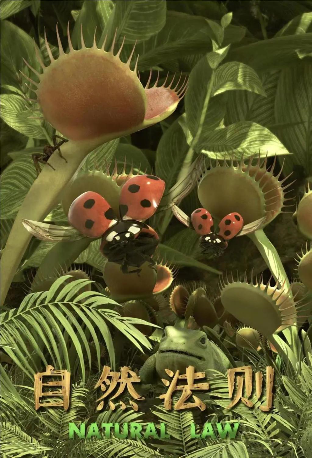 《自然法则》全片以人与自然和谐相处为主题,表现了尊重生命,保护生物多样性的理念。我作为导演与编剧以及艺术总监,在作品创作过程中我比较想采用微观的视角来进行创作,在艺术风格的把握上采用写实的手法进行制作。所以,从三维模型制作开始就和模型老师反复沟通,力求进行写实制作;在材质与灯光的表现方面,采用世界优秀渲染器Arnold技术来完成。这样,能够让视觉影像方面能够有一种真实纪录片的艺术感觉,使观众在观看的时候有极强的代入感。在创作中,在引导学生创作过程中更加注重挖掘故事背后人与自然蓬勃共存的关系。