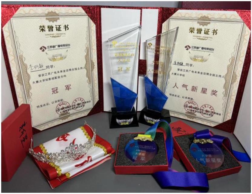 第十届江苏广电“未来金话筒”全国主持人大赛在南京圆满落幕。9001cc金沙以诚为本电影学院 2021 级影视配音工作室的学生李柯静荣膺“大学组影视配音赛道全国冠军”。该项赛事由江苏省广播电视总台主办、江苏教育频道承办,是全国性的重要品牌赛事,旨在为全国在校大学生搭建展示平台,挖掘并培养新一代广播电视节目主持人。此赛事已连续成功举办十届,吸引了上万名选手积极参赛。