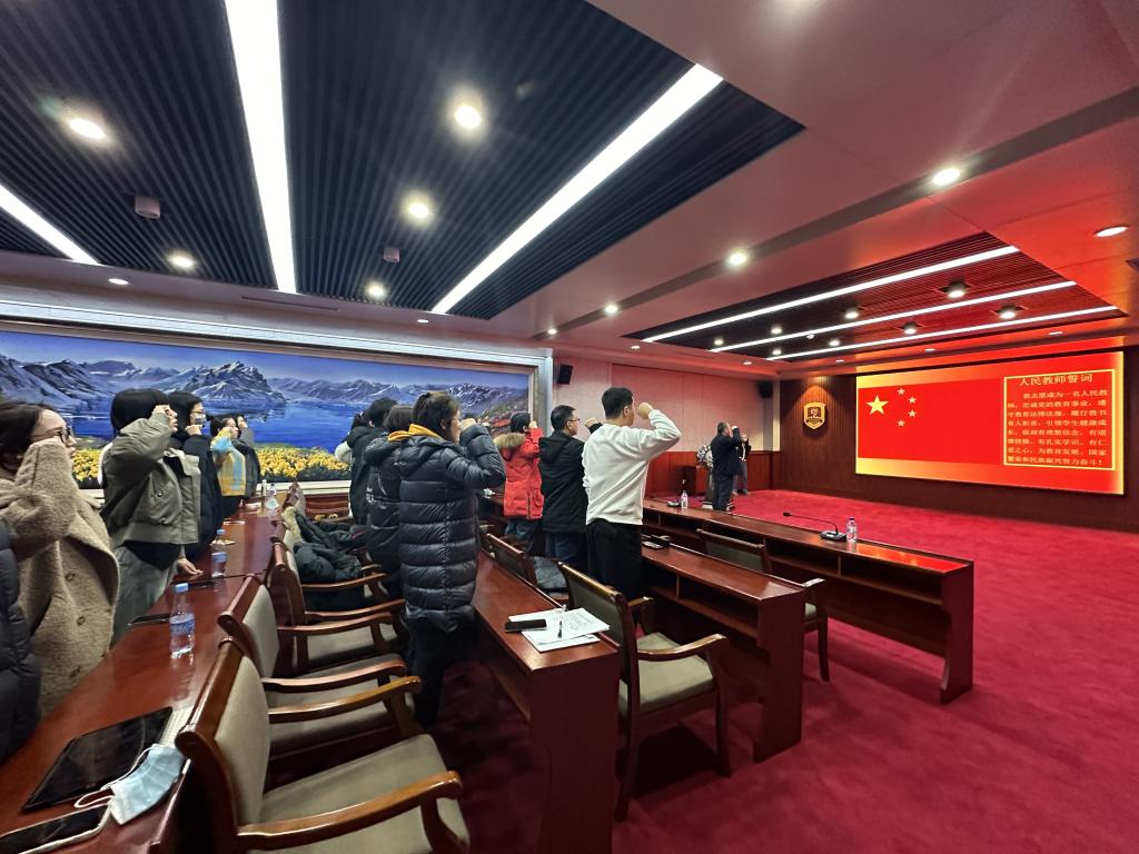 学工部常务副部长刘伟斌带领全体辅导员宣读人民教师誓词